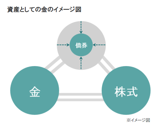また、長期目線で将来さらなる通貨価値の下落やインフレが引き起こされるリスクを考えた場合、それらのリスクに備える方法として、従来型の株式と債券の組み合わせから、株式と金の組み合わせを基本とする資産運用のあり方も考えていく必要があると考えられます。