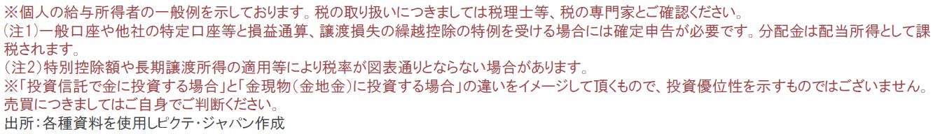 「ピクテ・ゴールド」は投資信託であるため、金現物と比べ税制面、保有面での手軽さが特徴です。また、他の投資信託同様に非課税口座も活用できます。