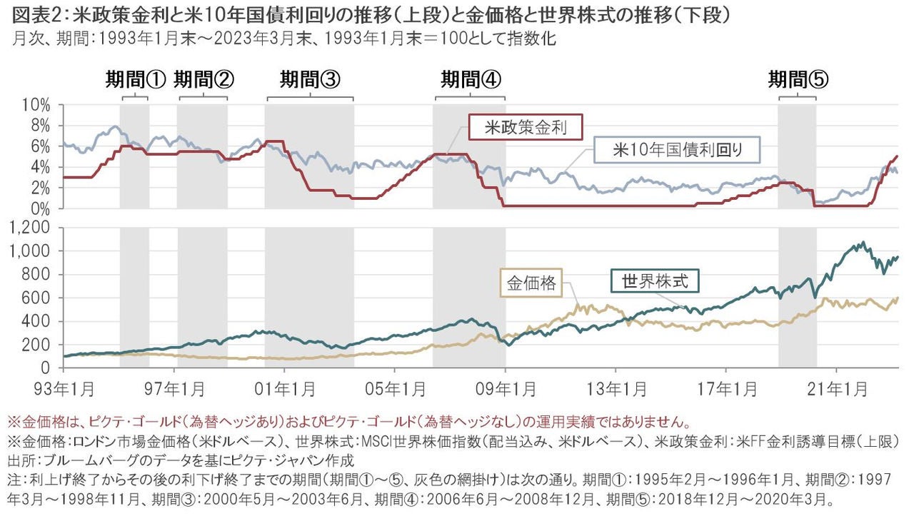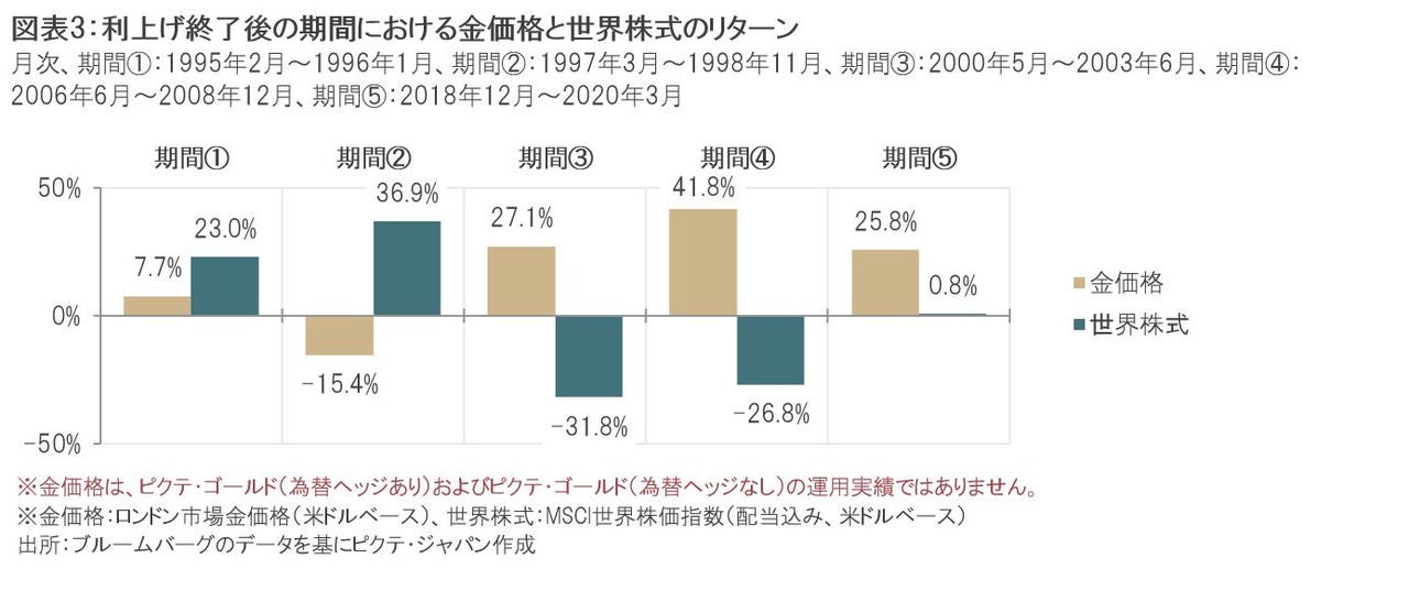 金価格は2000年以降は米国の利上げサイクル終了後の期間において上昇