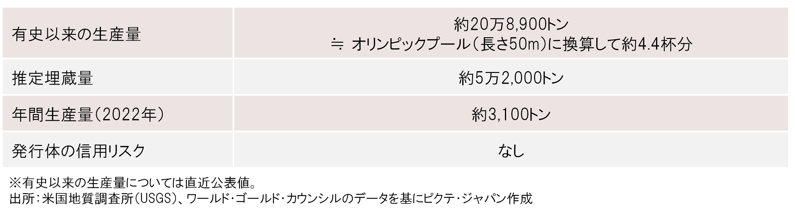 金は生産量が少なく希少性が高いほか、錆びることがなく、貴金属として永遠の価値を持つとされます。また、実物資産としてそのもの自体に価値を持つことから、インフレ時のヘッジ手段として見なされてきました。さらに、無国籍通貨としての側面を持ち、株式などのように発行体が存在せず信用リスクがないため、地政学リスクや信用不安などが高まる局面などでは資産の逃避先として評価されてきました。