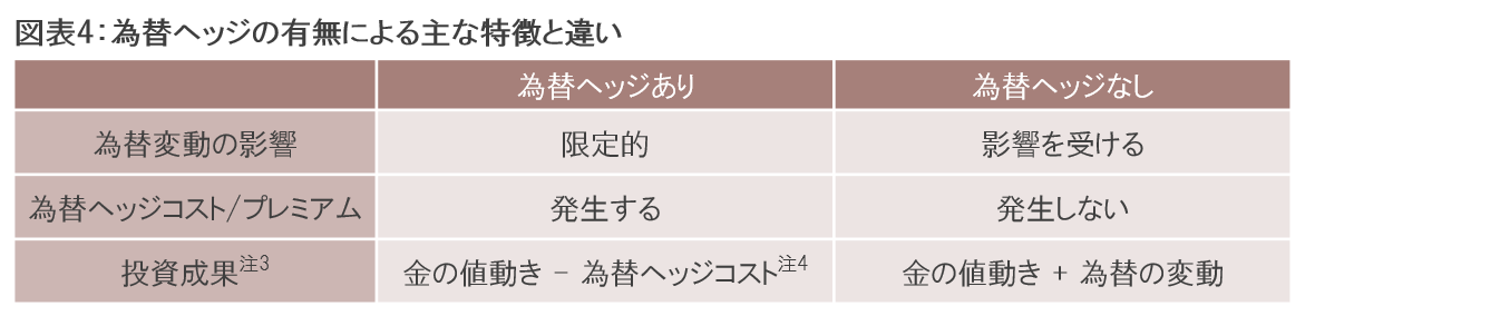 注2 為替ヘッジは為替変動の影響を完全に排除できるものではなく、為替ヘッジ後の金価格は為替変動の影響を受ける場合があります。