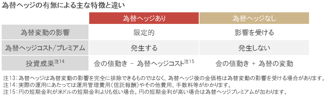※ピクテ・ゴールドは「為替ヘッジあり」と「為替ヘッジなし」の2ファンドからお選びいただけます。