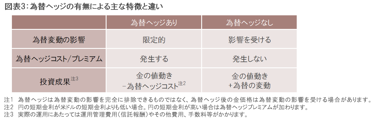 - 金投資と「為替ヘッジあり」「為替ヘッジなし」