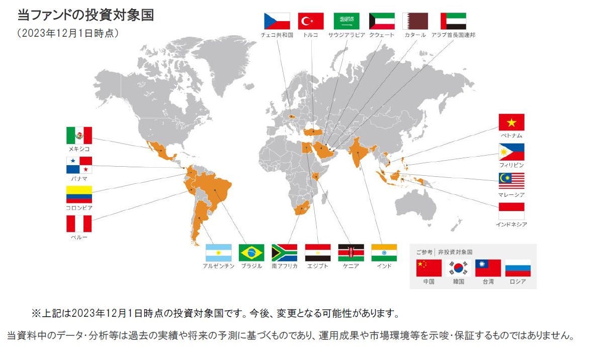 当ファンドは、新興国の中でも労働人口が増加する国に注目します。そのため、労働人口が減少している中国、韓国、台湾、ロシアなどは投資対象国ではありません。