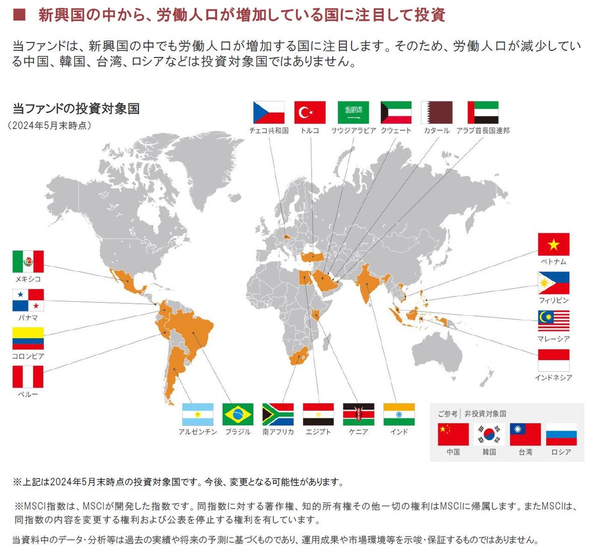 当ファンドは新興国のなかでも労働人口が増加している国の株式に投資するファンドです。