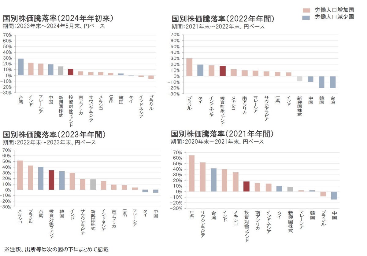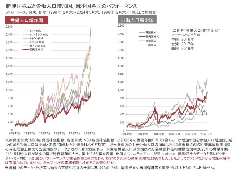 ■ 労働人口増加国の株価は中長期的に新興国全体を上回って推移