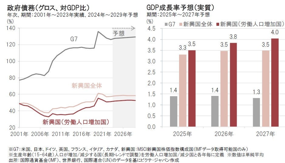 1)相対的に軽い債務負担、高い経済成長率、良好な人口動態見通しなど、先進国より良好な新興国経済のファンダメンタルズ(基礎的条件)、