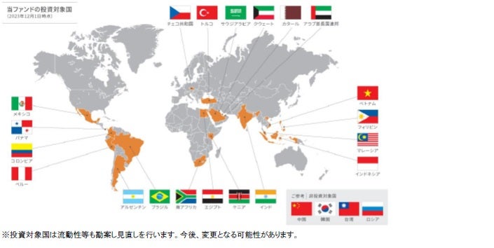 2023年12月末現在、労働人口が減少している中国・韓国・台湾・ロシアなどは投資対象外です。