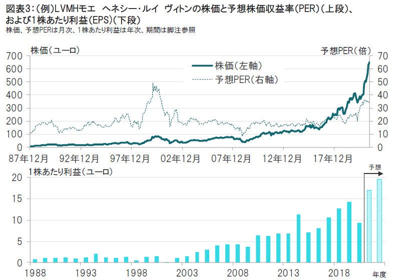 しかし、利益成長率の見通しをみると、プレミアム・ブランド企業は市場平均に比べて相対的に高い成長が見込まれています。世界的な経済活動の再開の本格化期待が高まる中で、プレミアム・ブランド企業各社は、その恩恵(「リベンジ消費」拡大や、旅行需要の復活など)を大いに享受することができると考えられるためです。足元のバリュエーション水準は、こうした高い成長性を反映したものであると考えられます。