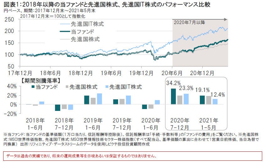 しかし、一方で、景気回復にともない物価上昇圧力が高まり、世界的なインフレ懸念が浮上していることから、金利先高観も高まっています。こうした足元の市場環境下、株式市場では特にバリュエーション(投資価値評価)水準に過熱感のある、情報技術(IT)などのハイテク関連銘柄の株価が大きく調整する局面もみられます。