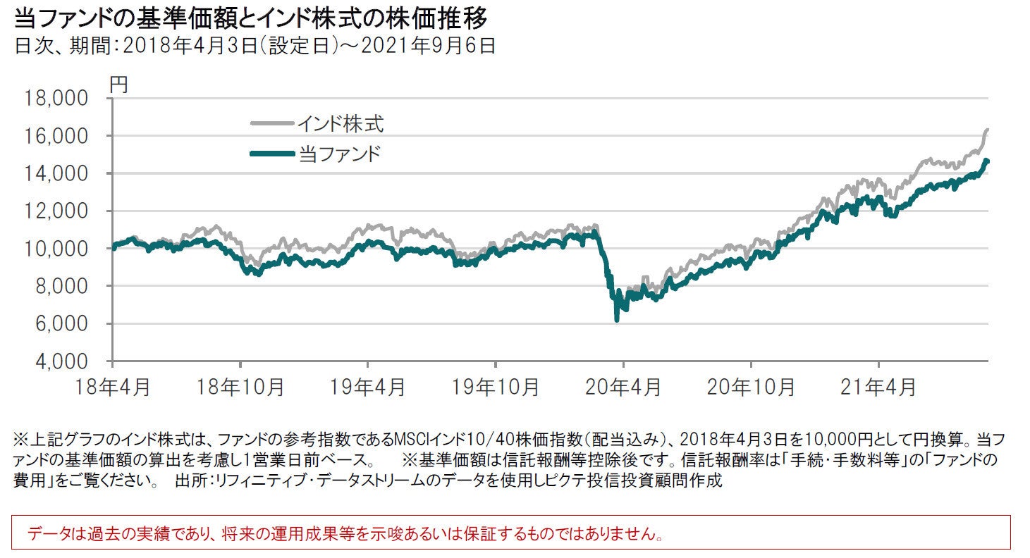 上昇基調が続くインド株式市場ですが、新型コロナウイルスの感染状況の落ち着きにより景気回復期待が高まっているほか、経済のファンダメンタルズ(基礎的条件)も改善傾向にあることなどが、今後も株価の支援材料となると考えます。さらに中長期的なインド経済の成長力に対する見方には変わりありません。当ファンドでは、引き続きインド株式のうち、長期的に勝ち組となりうる銘柄に厳選投資を行っていく方針です。