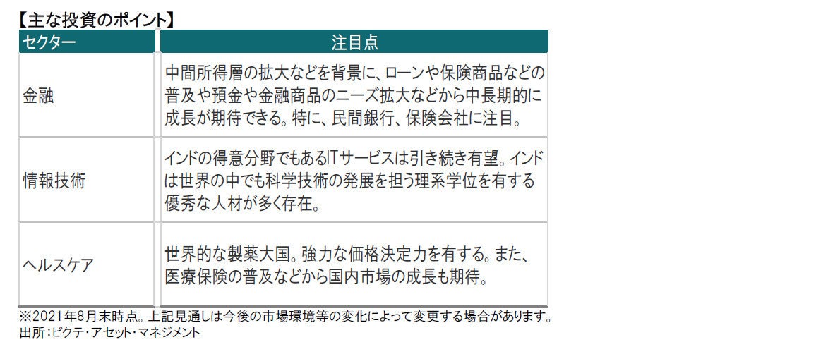 当ファンドの運用に際しては引き続き、企業の「質」に注目し、長期的に見て勝ち組となるような企業を厳選して投資を行う方針です。短期的には、依然として新型コロナウイルスの感染状況や米国の金融政策動向を巡ってインド株式市場のみならず世界の金融市場の値動きが大きくなる局面があることも想定されます。こうした局面では、ピクテが注目する有望な銘柄の株価も下落する可能性があります。そのような場合は、中長期的な投資の好機であると捉えます。