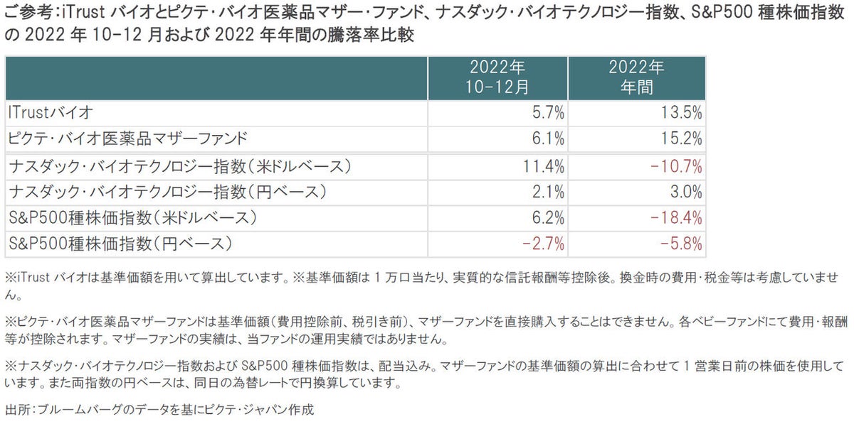 - iTrustバイオ|2022年10-12月に相対的に好調なパフォーマンス となったピクテ・バイオ医薬品マザーファンド