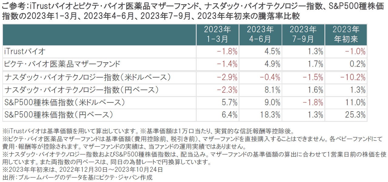 - iTrustバイオ|2023年7-9月のピクテ・バイオ医薬品マザーファンドの振り返りと今後のポイント