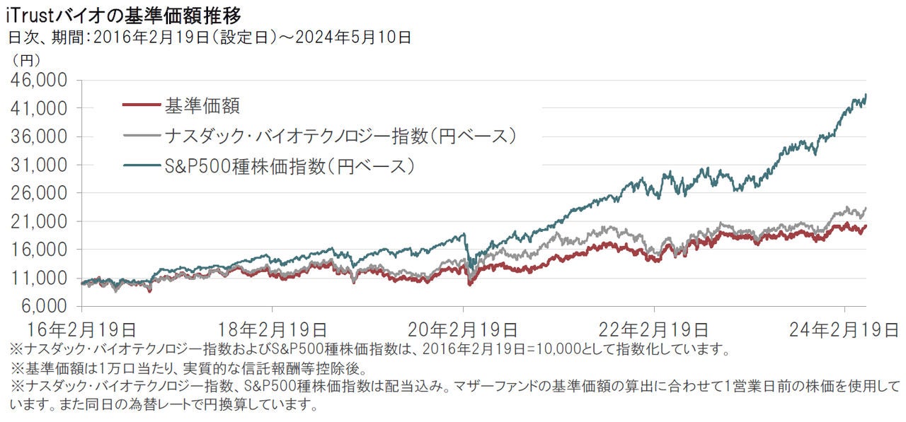 一方、2024年2月初めにかけて肥満治療薬のパイプラインへの期待などから株価が大きく上昇していたアムジェン(米国)、2024年通期ガイダンス(業績予想)で売上高の減少が予想されているバイオジェンなどは組入比率を引き下げました。