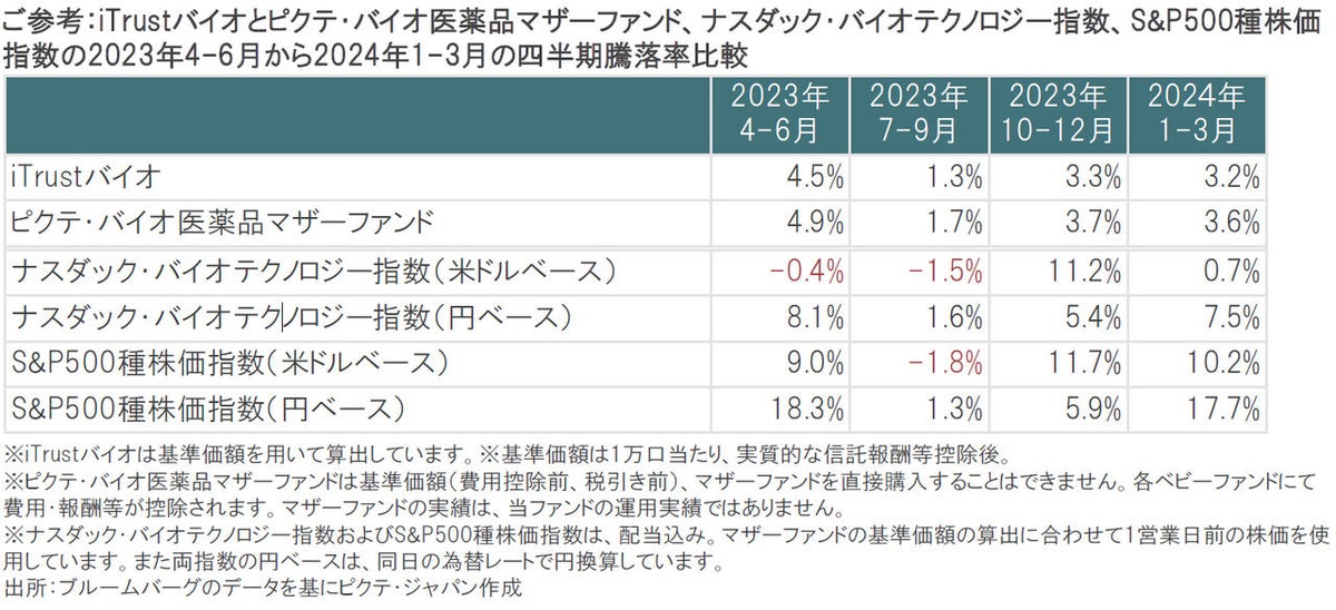 - iTrustバイオ|2024年1-3月のピクテ・バイオ医薬品マザーファンドの振り返りと今後のポイント