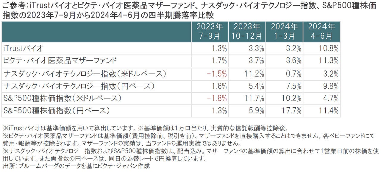 - iTrustバイオ|2024年4-6月のピクテ・バイオ医薬品マザーファンドの振り返りと今後のポイント