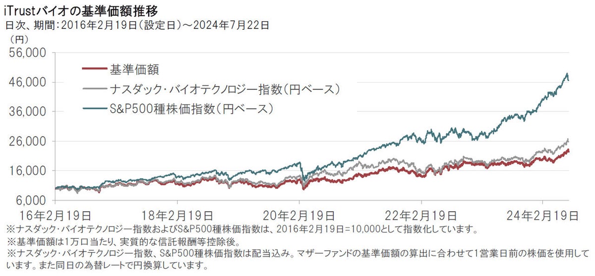 バイオ医薬品株式は、金利感応度が相対的に高い一面があります。そのため、米国では利下げ観測が高まってきてはいますが、引き続き米国のインフレや政策金利の動向には注意が必要と考えます。また、薬価引き下げの動きや米国大統領選挙の動向、治験結果の発表、決算の内容などが株価動向に影響を与える可能性などに注視が必要と考えます。