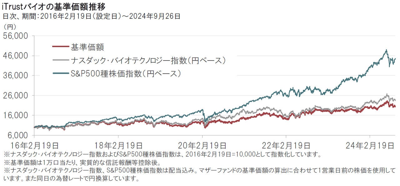 米国大統領選挙において医療制度改革や薬価の問題など大きな争点となった場合は、バイオ医薬品株式の株価が影響を受けることがありますが、選挙後は政策の不透明感がひとまず解消されることもあり、経済のファンダメンタルズ(基礎的条件)や金融政策の動向、バイオ医薬品企業をターゲットとしたM&A(合併・買収)の動き、新薬承認の動向、治験結果や決算など個別銘柄の要因がバイオ医薬品株式の主な変動要因となるものと考えます。
