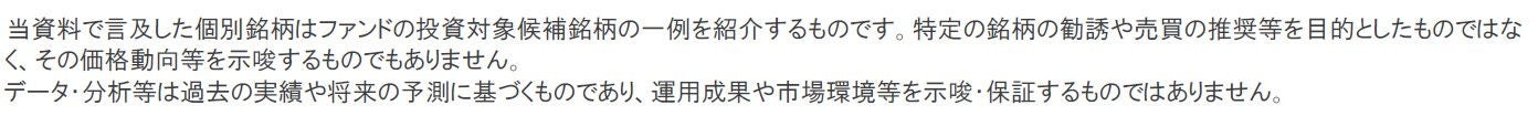 ●当資料はピクテ・ジャパン株式会社が作成した販売用資料であり、金融商品取引法に基づく開示書類ではありません。取得の申込みにあたっては、販売会社よりお渡しする最新の投資信託説明書(交付目論見書)等の内容を必ずご確認の上、ご自身でご判断ください。