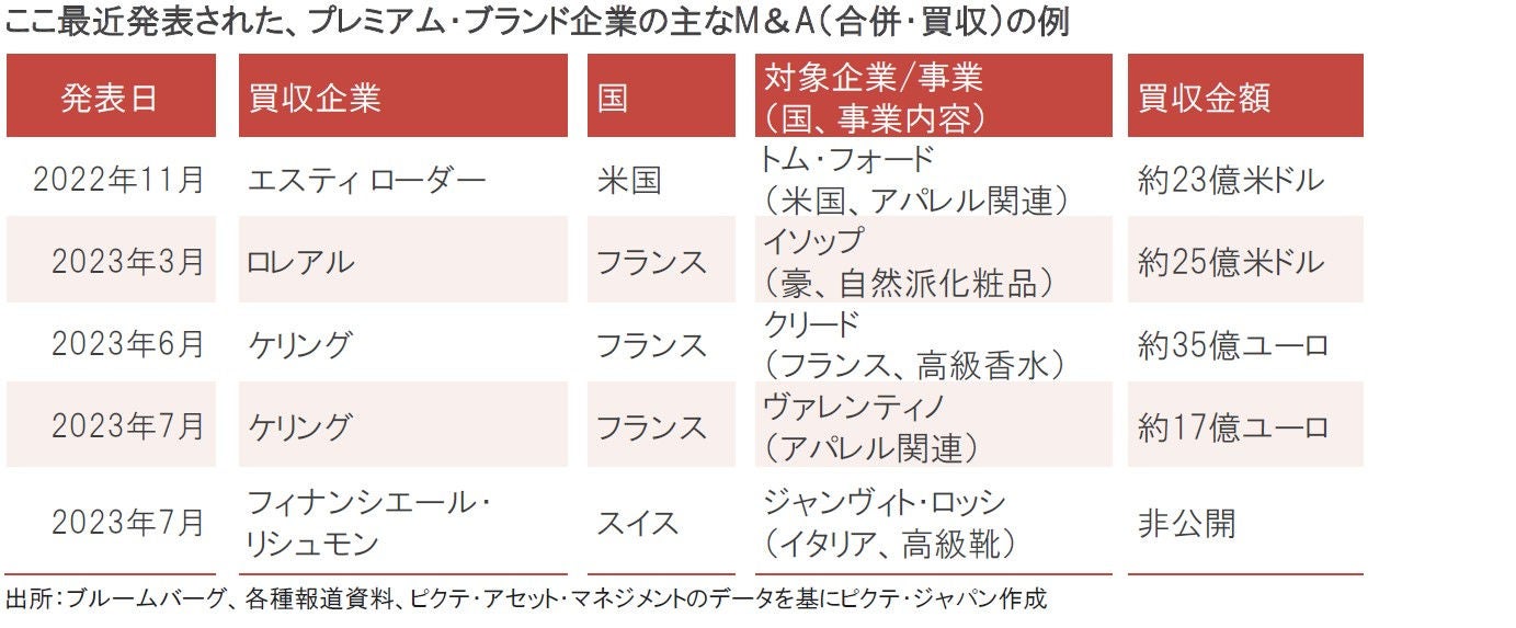 また、健全な財務基盤を有するプレミアム・ブランド企業は、潤沢な手元資金などを使って、競合企業などを買収することも可能です。ここ最近でも、いくつかのM&A(合併・買収)の例がありました。2024年も、強力なブランド力・健全な財務基盤を有する企業が、ブランド戦略や財務面などにおいて助けを必要としている企業を買収する動きは続く可能性があります。