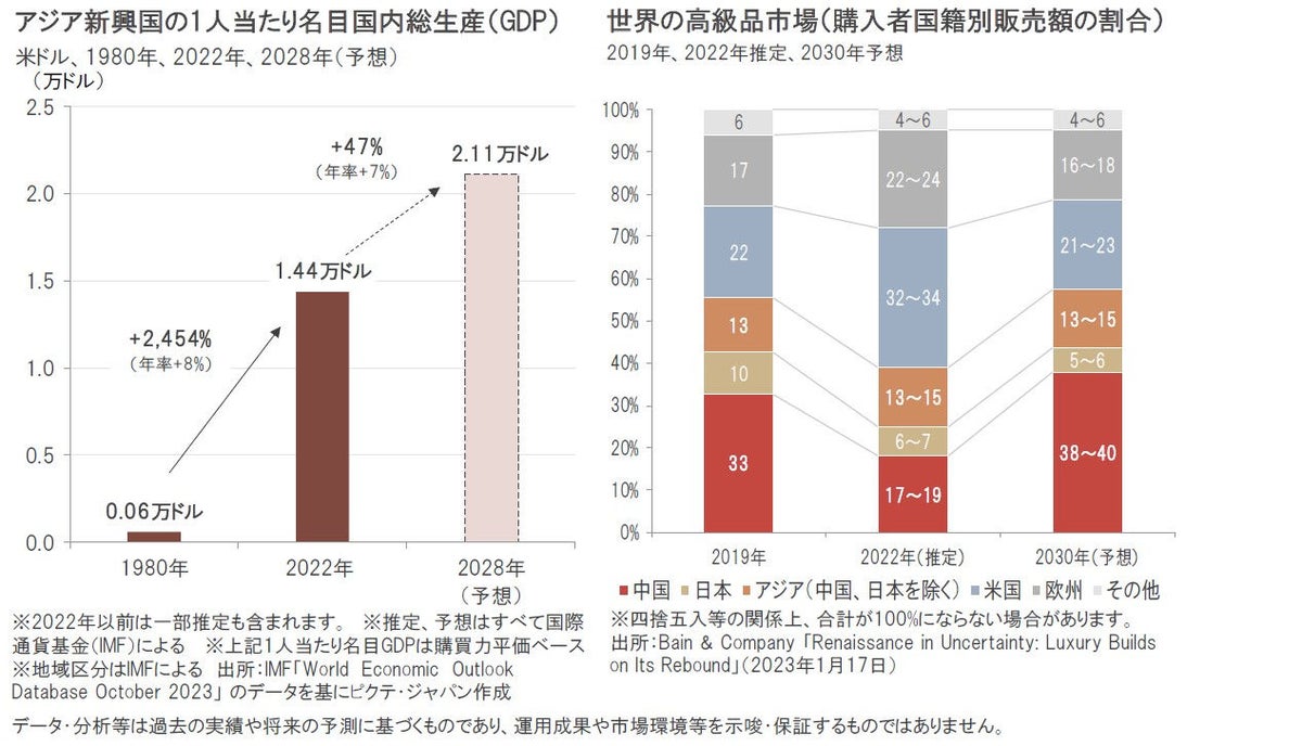 比較的景気変動の影響を受けにくい富裕層の顧客は、プレミアム・ブランド商品・サービス需要を支える存在となると期待されます。さらに、購買力を高めつつある消費意欲旺盛なアジア新興国の中間所得層の拡大は、今後も中長期的に、プレミアム・ブランド商品・サービスの需要拡大をけん引すると期待されます。