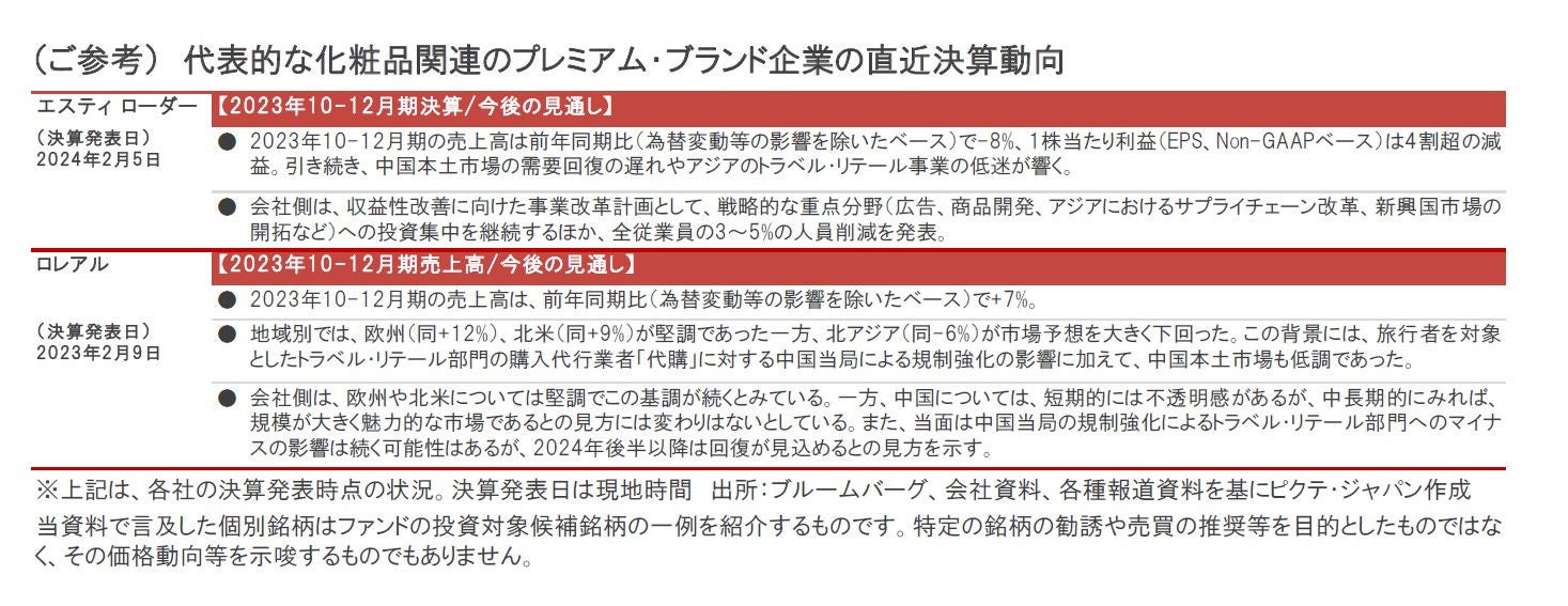 化粧品関連のプレミアム・ブランド企業は、中国市場の回復の遅れやトラベル・リテール関連の低迷といった厳しい環境に直面しています。