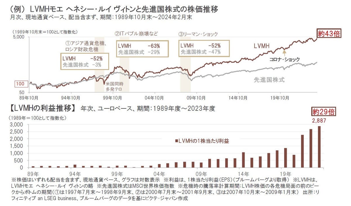 しかし過去の実績では、世界的な景気減速に直面してもプレミアム・ブランド商品やサービスに対する需要は根強く存在してきました。そのことが再認識された後には、株価は大きく反発し、中長期的にみれば利益成長を背景に株価も上昇基調を辿ってきました。