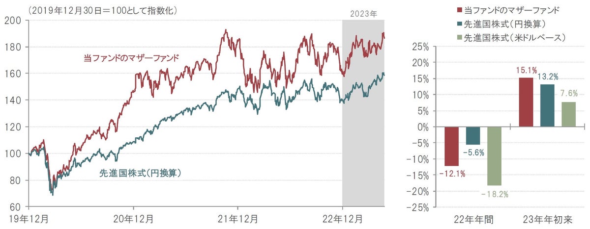 図表4:当ファンドのマザーファンドと先進国株式のパフォーマンス比較