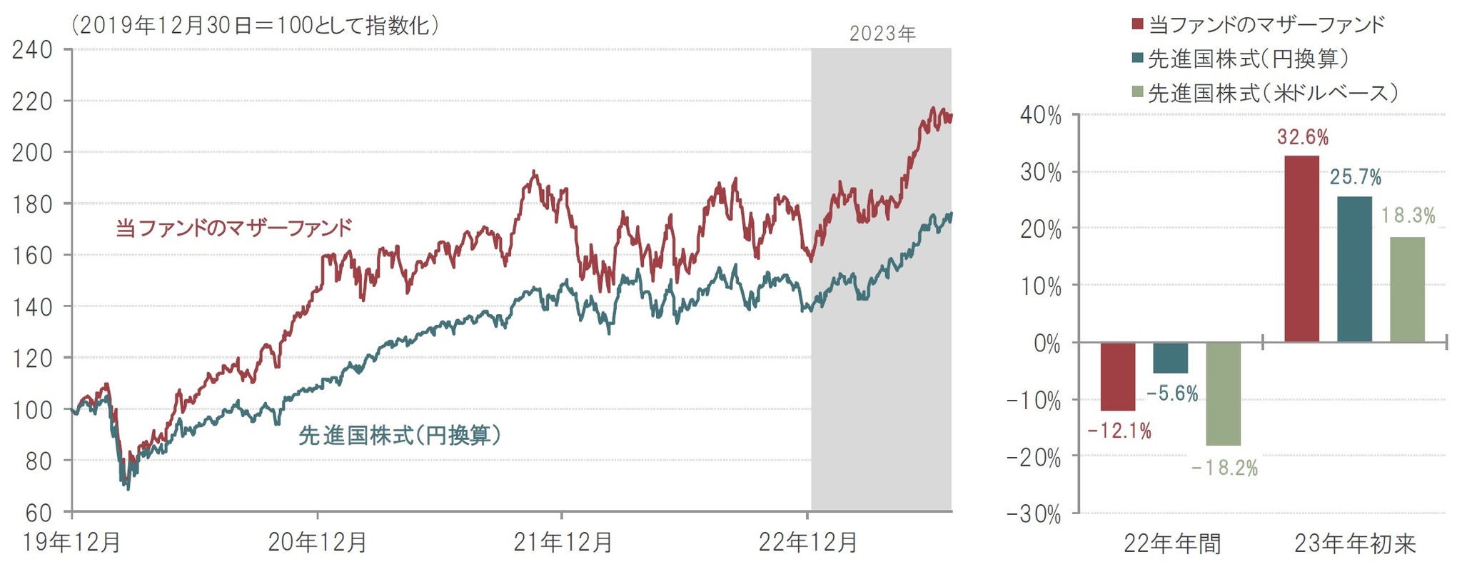 図表1:当ファンドのマザーファンドと先進国株式のパフォーマンス比較