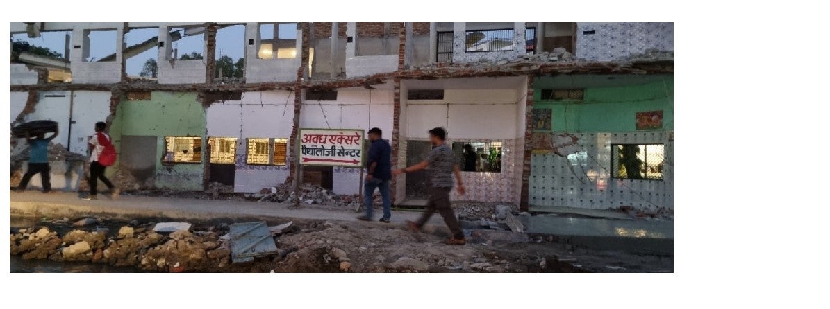 この結果は何を意味しているでしょうか?下の写真は、アヨーディアの街中でみた風景です。都市整備が進められ、道路を拡張する過程で、人々の家や店は手あたり次第取り壊されていました。これが問題にならないという政権側の過信が、選挙結果にあらわれたのではないかと考えています。今後のモディ政権には、一方的な開発ではなく、多様な民意がある中で合意を形成し、バランスの取れた開発を行うことが求められると思われます。