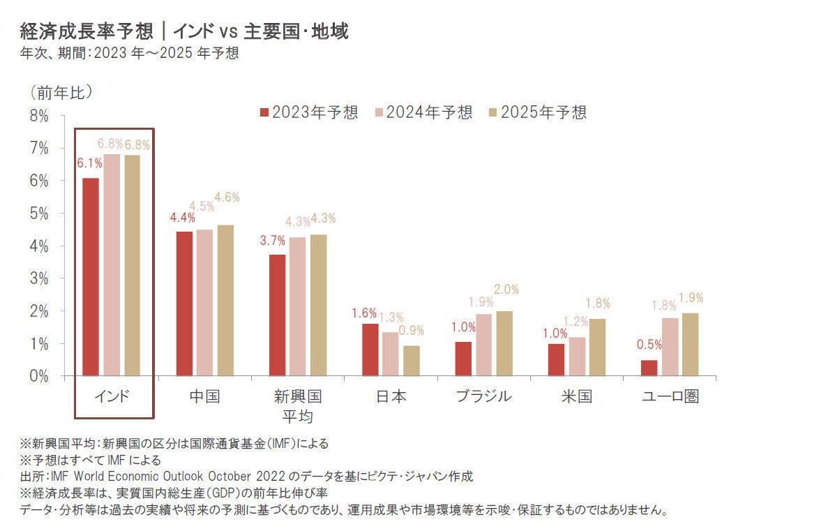 インド経済は、労働の担い手となる若い人口が多いことやモディ首相の強力なリーダーシップによる経済改革などを背景に、世界の主要国に比べると高成長が予想されています。