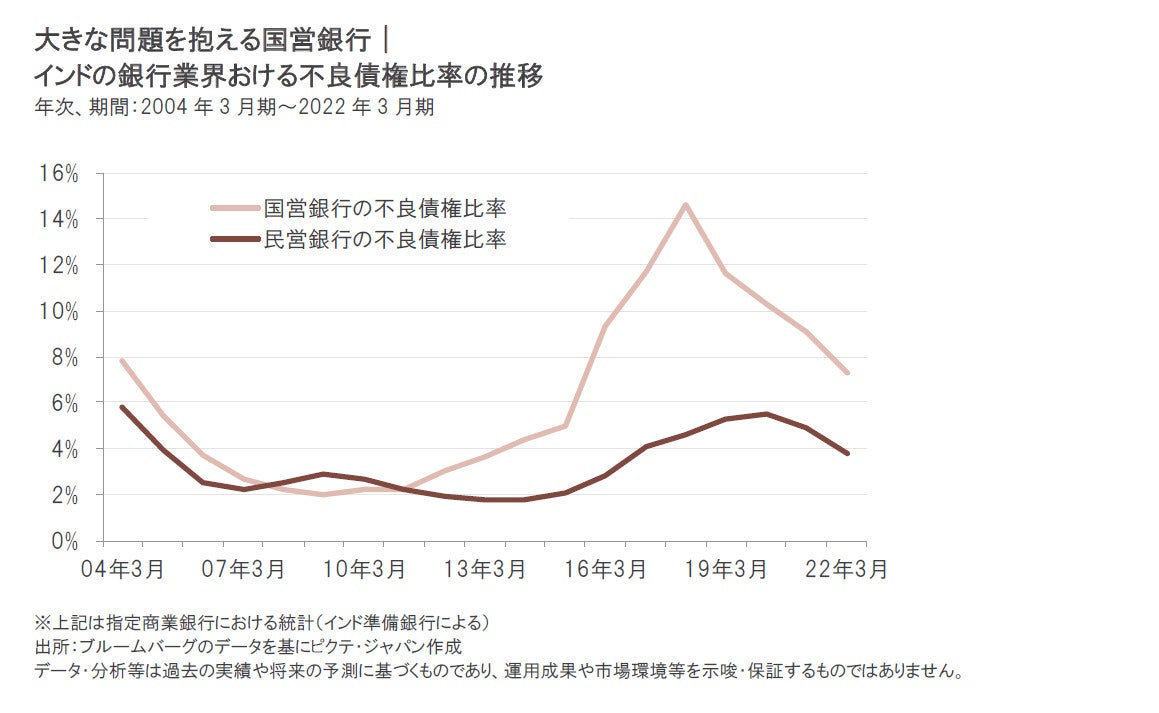 インド政府とインド準備銀行(中央銀行)は、様々な取り組み(例えば、資産再建会社(いわゆるバッドバンク)への不良債権移管や、国営銀行への公的資金注入)を通して、不良債権問題の早期解決を目指していますが、解決は道半ばの状況です。
