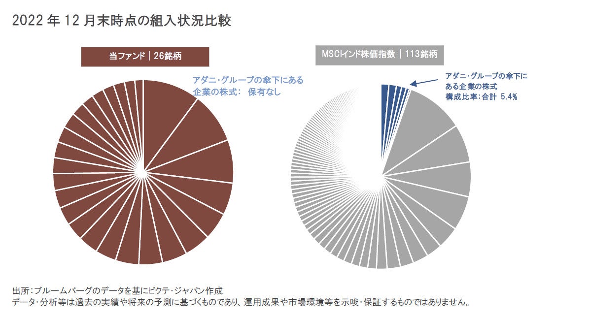 当ファンドの基準価額の下落率が小幅にとどまった背景の1つには、株価が大幅に下落したアダニ・グループの傘下にある企業の株式を保有していなかったことがあります。