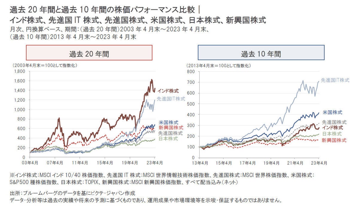 過去20年間の長期でみると、インド株式は主要株式を上回る良好な株価パフォーマンスとなりました。