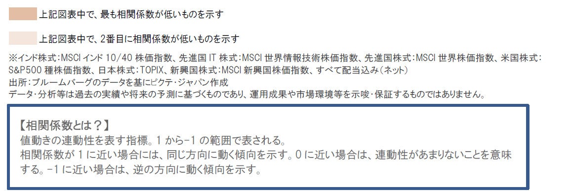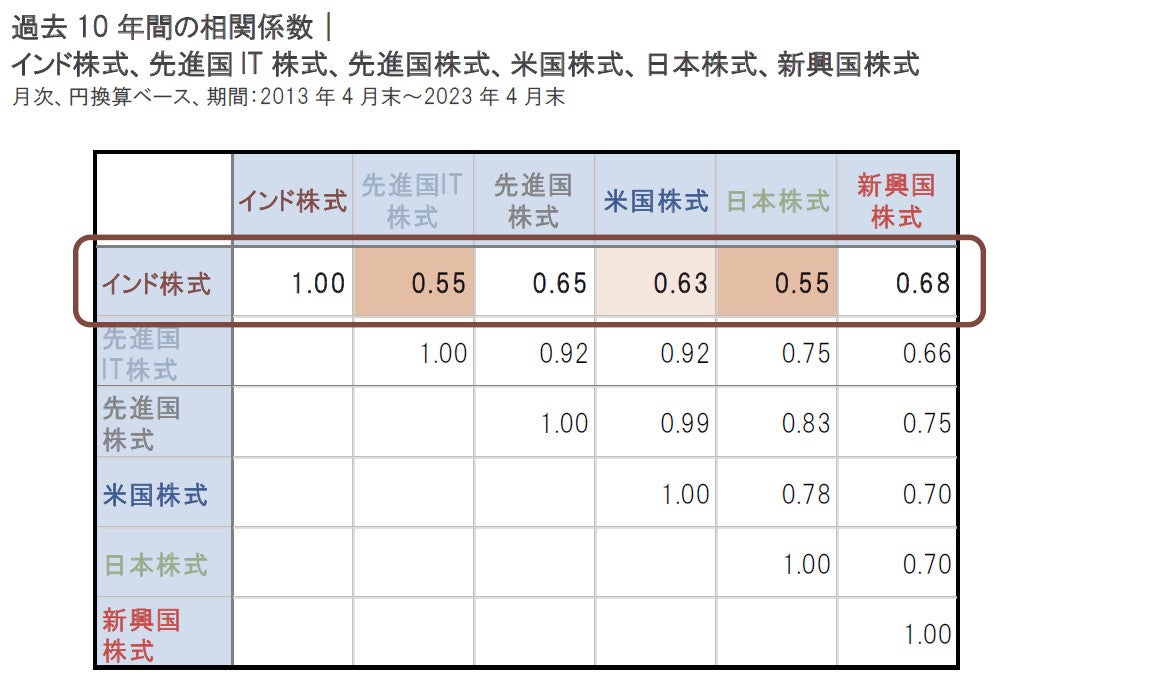 独自の成長ドライバーを有することなどから、インド株式は他の株式との連動性が相対的に低い