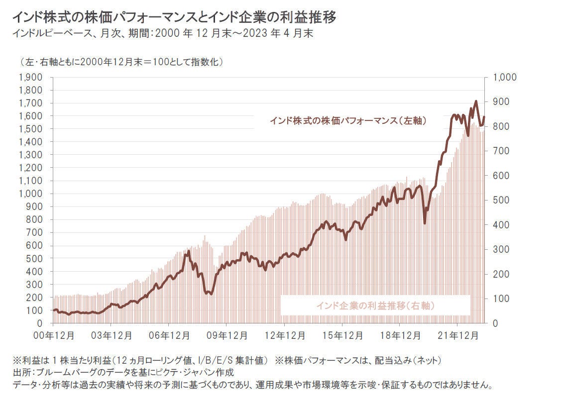 過去の実績では、インド経済の成長を背景に、インド企業は利益成長を実現し、株価も上昇してきました。