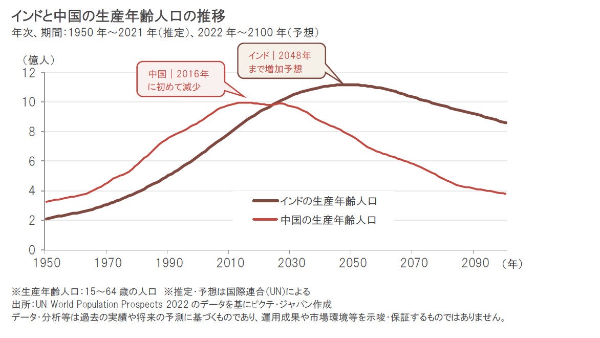 インドは、世界的な人口大国ですが、特に労働の担い手となる若い世代が多いのが特徴です。若い世代が、労働によって所得を増やし、消費を拡大していくことで経済成長をけん引すると期待されています。