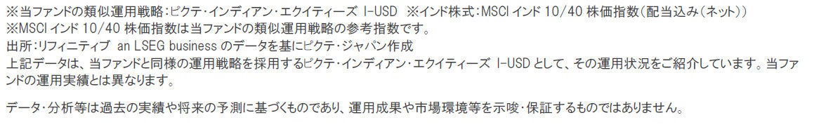 当ファンドは、誠実な経営陣によって経営されている優良企業の株式を厳選した上で投資を行う、アクティブ・ファンドです。このため、当ファンドの組入銘柄や組入比率は、インドの代表的な株価指数の構成銘柄や比率とは異なり、その結果、パフォーマンスにも違いが生じます。