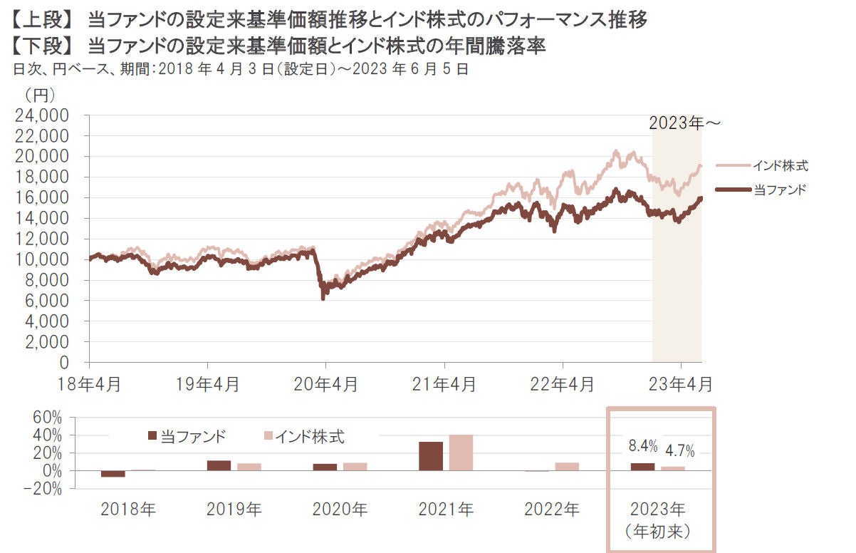 2023年年初来のインド株式市場と当ファンドのパフォーマンス状況