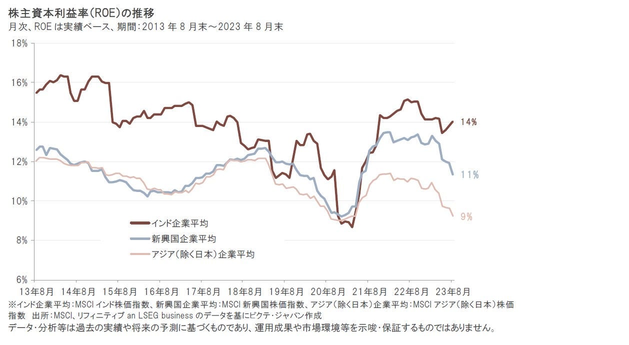 また、活発な情報技術・デジタル化投資は、インド企業のROEが今後さらに向上していくことに貢献するとみています。