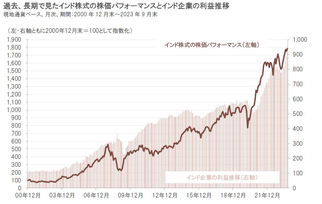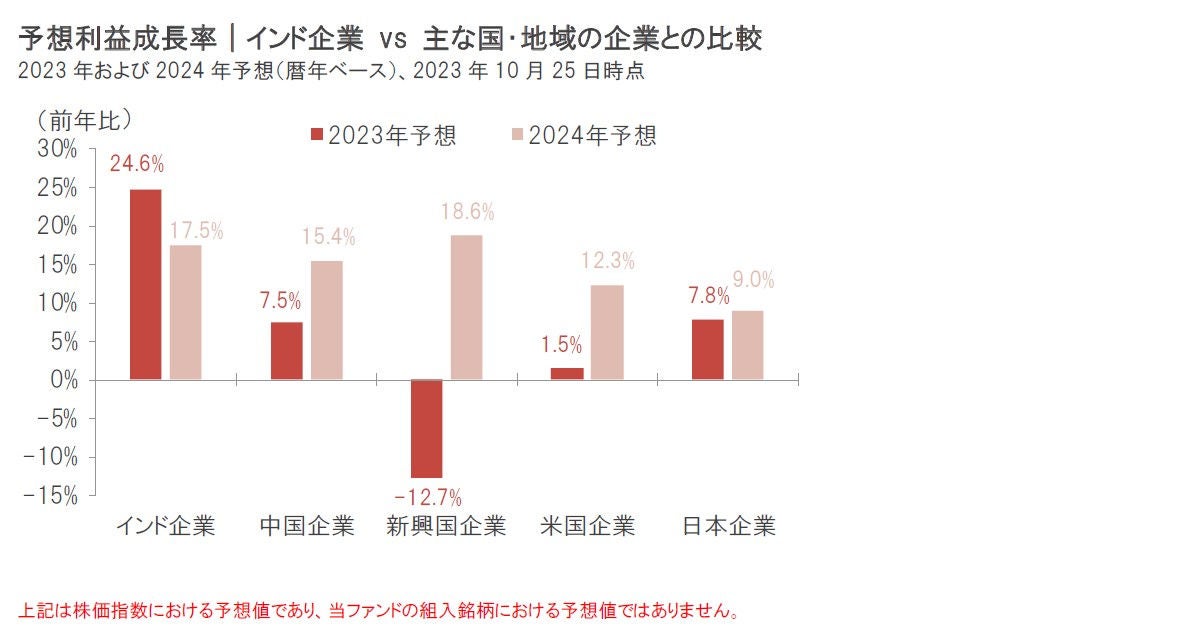 2023年(暦年ベース)の利益予想をみると、インド企業は経済成長などを背景に、相対的に高い利益成長率が予想されていることに加えて、来年も堅調な利益成長が予想されています。インド企業の利益成長は、引き続き株価の支援材料になると期待されます。