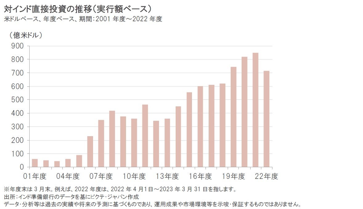 さらに足元では、海外企業が中国から製造拠点を移転させる動きを強めています。これまで「世界の工場」として大きな役割を果たしてきた中国ですが、コロナ禍、そしてその後の経済活動再開でサプライチェーン(供給網)の混乱が発生し、さらに米中関係の緊迫化という事態にも直面しています。こうした流れから、インドを製造拠点として強化する動きをみせる海外企業も多く、インドへの投資資金流入が拡大すると期待されます。