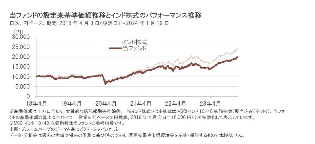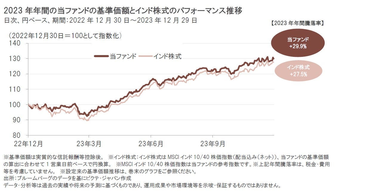 インド株式市場が上昇する中、当ファンドの基準価額も、2023年年間で29.9%の上昇となりました。
