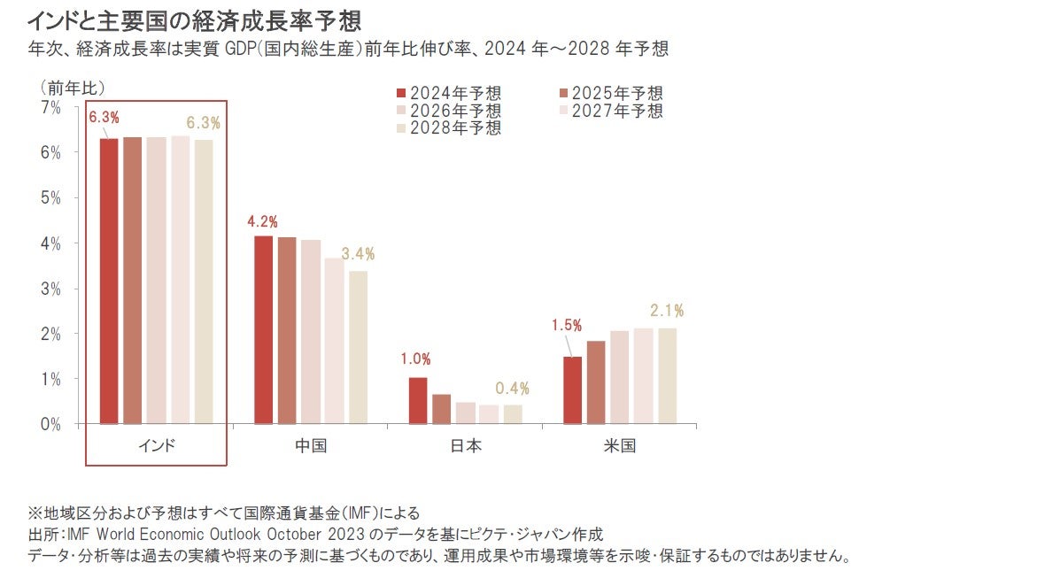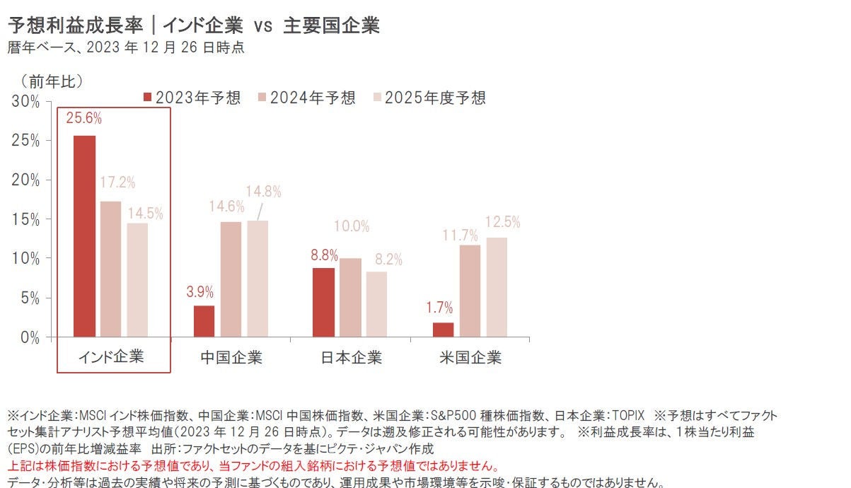 インド企業の利益成長予想をみると、2024年も相対的に高い利益成長率が予想されています。インド企業の利益成長は、引き続き株価の支援材料になると期待されます。