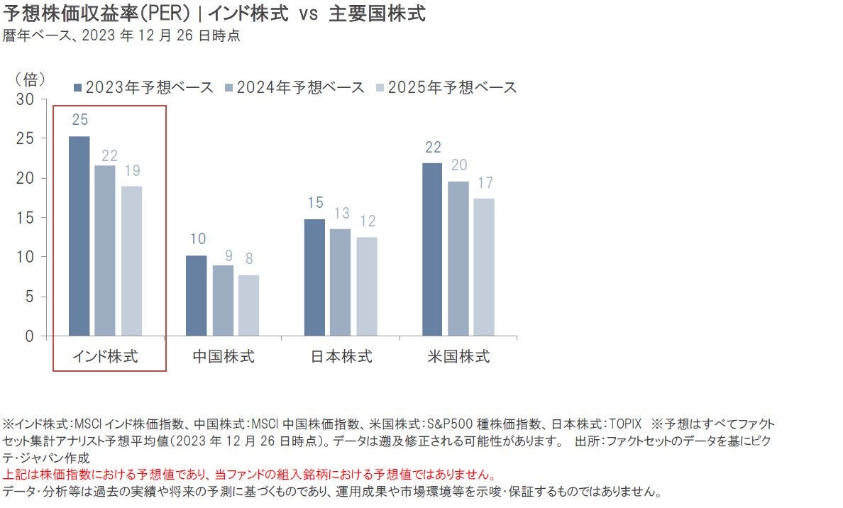 ただし、高い成長性が期待されるがゆえに、インド株式のバリュエーション(投資価値評価)水準は、相対的に高水準にあります。中長期的に成長が期待できる優良銘柄であっても、バリュエーション水準に過熱感がある場合には投資を控えることも時には必要となるでしょう。バリュエーションの観点からも、銘柄選別は引き続き重要であると考えます。