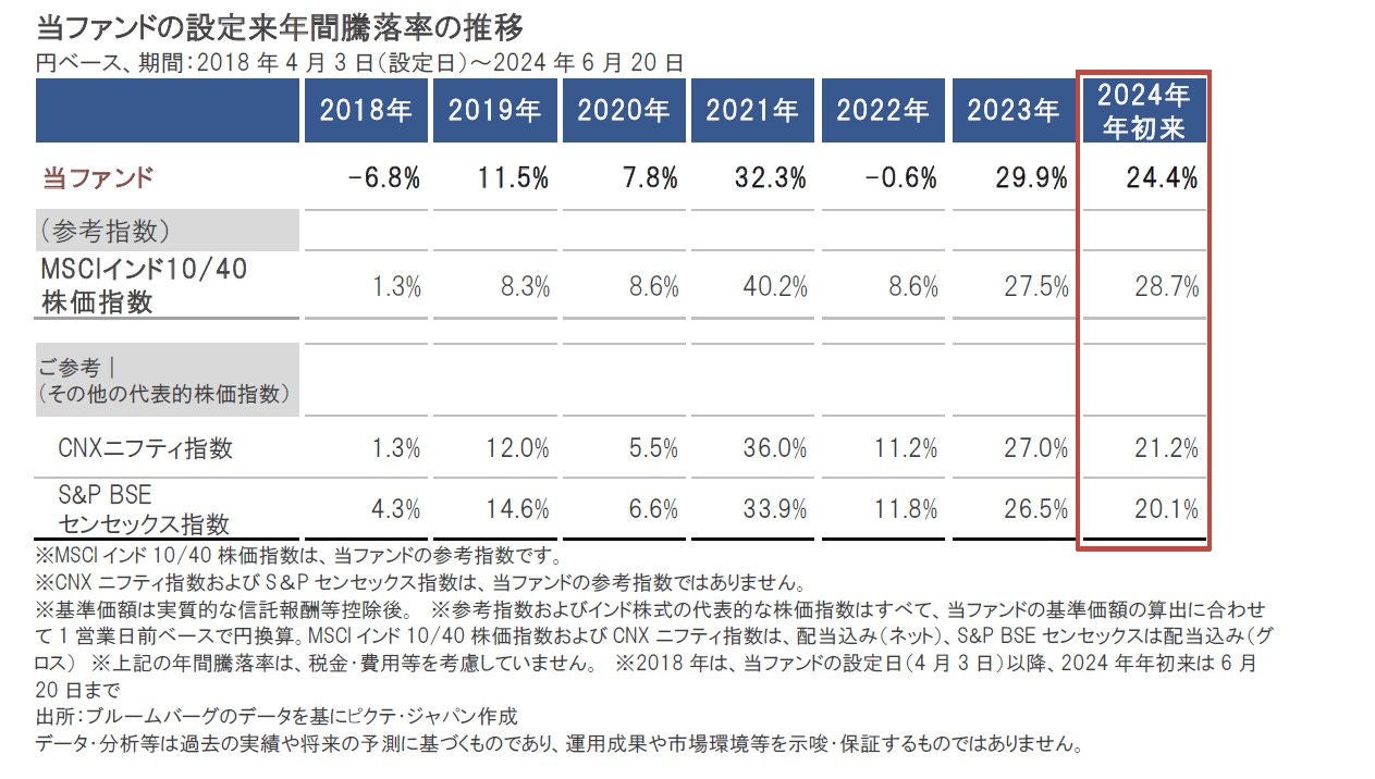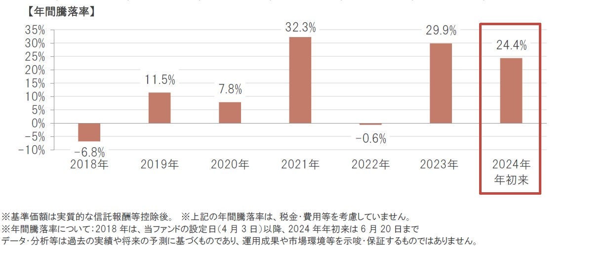 こうした市場環境下、当ファンドの基準価額も2024年年初来で上昇基調となっています(2024年6月20日時点)。