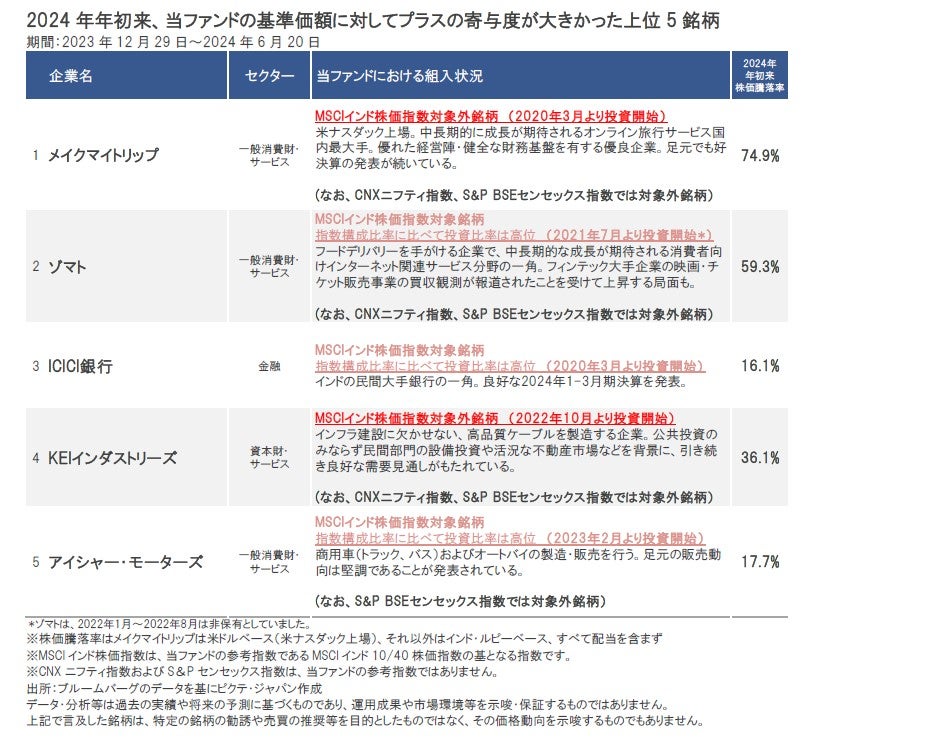●2024年年初来のインド株式市場は、予想外の結果となった総選挙直後の大幅下落など、幾度かの調整局面を経験したものの、上昇基調が続く