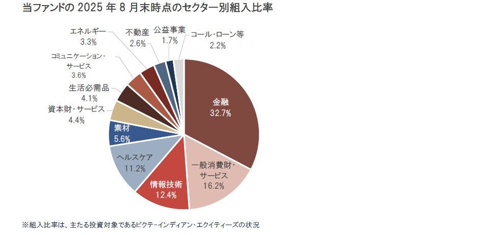 こうしたことから、運用チームは、インドにおけるITサービスを、今後も持続的に発展が期待できる注目分野の1つと位置付けています。当ファンドにおける2025年8月末時点のITサービス企業を含む情報技術セクターの組入比率は、12.4%と相対的に高位としています。より多様な顧客基盤を有し、質の高い経営が行われているITサービス企業を厳選したうえで、当面は、現時点の組入比率を維持する方針です。