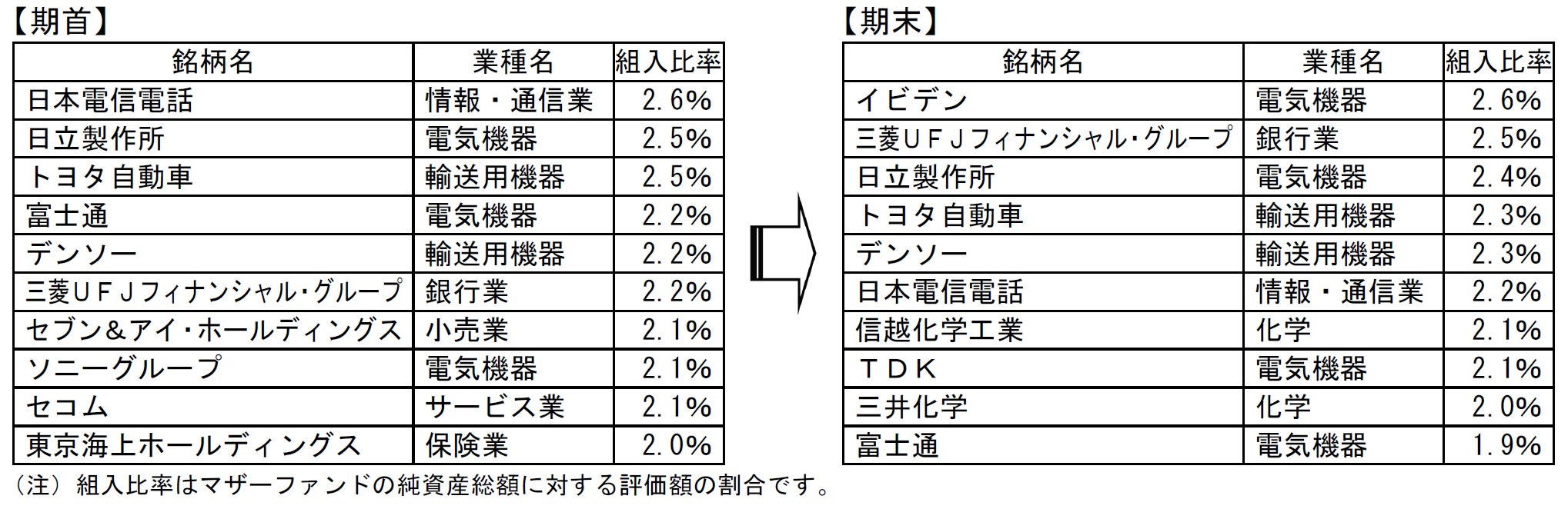※表で示した組入銘柄は、特定の銘柄の勧誘や売買の推奨等を目的としたものではなく、その価格動向を示唆するものでもありません。
